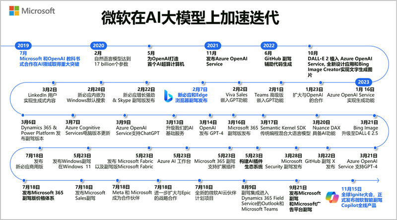 从2022年夏季开始,微软团队与OpenAI展开深度合作,将ChatGPT元素陆续加入到Azure和Copilot等微软产品与服务中,双方同时也致力于共同从源头上发现并解决最新技术中可能潜藏的技术和道德风险。