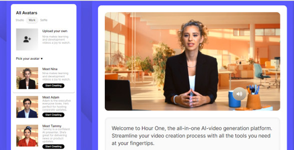 HourOne 则利用字符生成技术(Character Generation Technology),通过 AI 将人类的外貌、声音和动作复制出来,创建出所谓的”虚拟人”。这些虚拟人物可以在视频中朗读文本,从而化身为“教师”“新闻播报员”“虚拟代言人” 等角色。