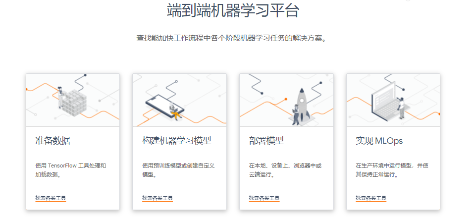 使用 TensorFlow 创建生产级机器学习模型,使用预训练模型或训练自己的模型 查找适合任何技能水平的机器学习解决方案