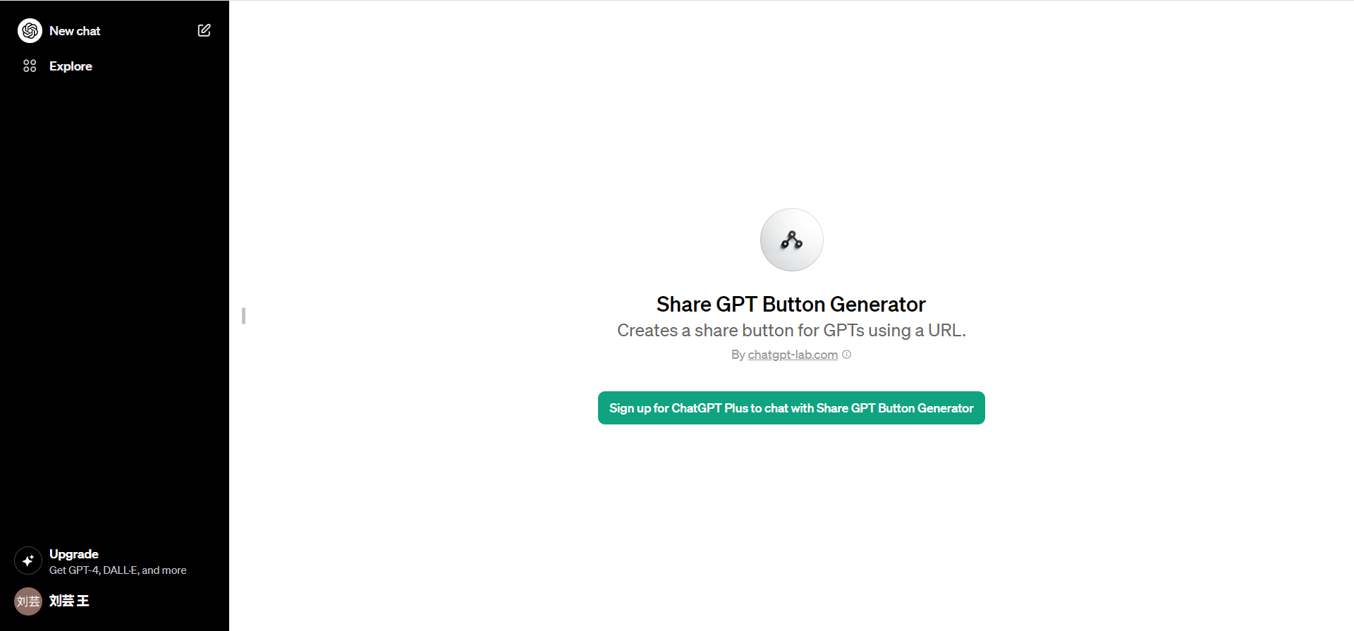使用 URL 创建 GPT 共享按钮。