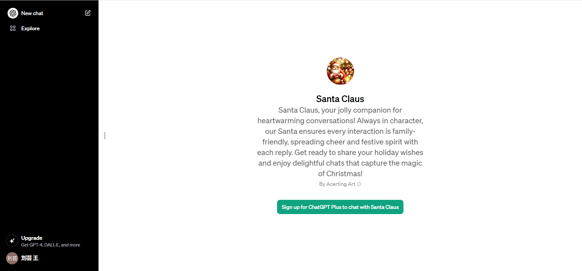 圣诞老人,你的快乐伙伴,进行温馨的对话!我们的圣诞老人始终保持着性格,确保每次互动都是家庭友好的,每次回复都会传播欢乐和节日气氛。准备好分享您的节日愿望并享受捕捉圣诞节魔力的愉快聊天!