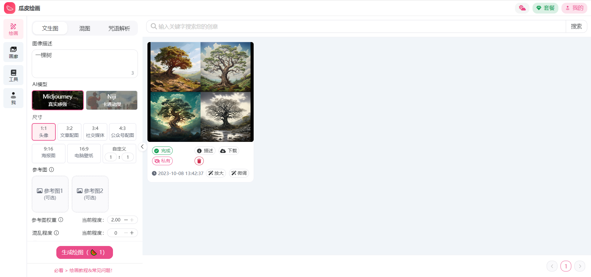 瓜皮AI绘画是基于 Midjourney 的一款 AI 绘图工具