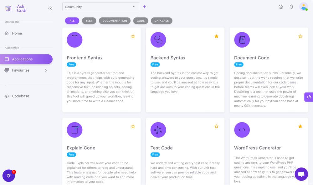 AskCodi是一个基于AI的代码生成助手,该工具理论上可以帮助你完成任何编码工作。从生成代码到解释代码背后的逻辑,从开发WordPress网站到创建一个应用程序,甚至重构你现有的代码,Codi将是你整个编码之旅的伴侣。